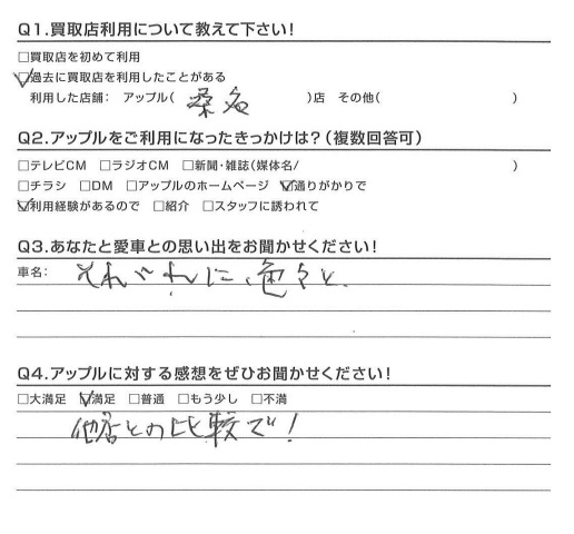 お車のご相談・ 査定だけでもOK! カンタン 入力 30秒 アップルがブランド買取始めました! お電話でも受付中! 受付時間10:00 ~ 18:30 0120-174-177 お車のご相談・ 査定だけでもOK! カンタン 入力 30秒 アップルがブランド買取始めました! お電話でも受付中! 受付時間10:00 ~ 18:30 0120-174-177 アップルがブランド買取始めました! お電話でも受付中! 受付時間10:00 ~ 18:30 0120-174-177 店舗情報 在庫車 スタッフ紹介 ブログ お客様の声 キャンペーン お得 無料査定 click お客様の声 ご記入日: 2016/05/11 T様 他店との比較で!担当:鈴木 前へ 次へ お客様の声一覧を見る