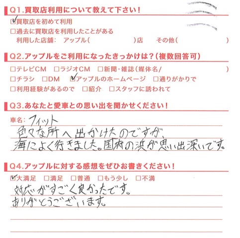 お車のご相談・ 査定だけでもOK! カンタン 入力 30秒 アップルがブランド買取始めました! お電話でも受付中! 受付時間10:00 ~ 18:30 0120-174-177 お車のご相談・ 査定だけでもOK! カンタン 入力 30秒 アップルがブランド買取始めました! お電話でも受付中! 受付時間10:00 ~ 18:30 0120-174-177 アップルがブランド買取始めました! お電話でも受付中! 受付時間10:00 ~ 18:30 0120-174-177 店舗情報 在庫車 スタッフ紹介 ブログ お客様の声 キャンペーン お得 無料査定 click お客様の声 ご記入日: 2014/09/22 E様 対応がすごく良かったです。ありがとうございます。担当:武田 前へ 次へ お客様の声一覧を見る