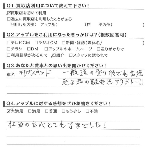 お車のご相談・ 査定だけでもOK! カンタン 入力 30秒 アップルがブランド買取始めました! お電話でも受付中! 受付時間10:00 ~ 18:30 0120-174-177 お車のご相談・ 査定だけでもOK! カンタン 入力 30秒 アップルがブランド買取始めました! お電話でも受付中! 受付時間10:00 ~ 18:30 0120-174-177 アップルがブランド買取始めました! お電話でも受付中! 受付時間10:00 ~ 18:30 0120-174-177 店舗情報 在庫車 スタッフ紹介 ブログ お客様の声 キャンペーン お得 無料査定 click お客様の声 ご記入日: 2016/06/12 R様 担当の方がとても丁寧でした!担当:鈴木 前へ 次へ お客様の声一覧を見る