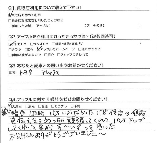 お車のご相談・ 査定だけでもOK! カンタン 入力 30秒 アップルがブランド買取始めました! お電話でも受付中! 受付時間10:00 ~ 18:30 0120-174-177 お車のご相談・ 査定だけでもOK! カンタン 入力 30秒 アップルがブランド買取始めました! お電話でも受付中! 受付時間10:00 ~ 18:30 0120-174-177 アップルがブランド買取始めました! お電話でも受付中! 受付時間10:00 ~ 18:30 0120-174-177 店舗情報 在庫車 スタッフ紹介 ブログ お客様の声 キャンペーン お得 無料査定 click お客様の声 ご記入日: 2016/06/12 S様 はじめ査定した時10万いかなかったけど他店の値段を伝えたらめっちゃ頑張ってくれて10万アップしてくれたことが すごい!!って思った松井さんありがとうございました~担当:松井 前へ 次へ お客様の声一覧を見る