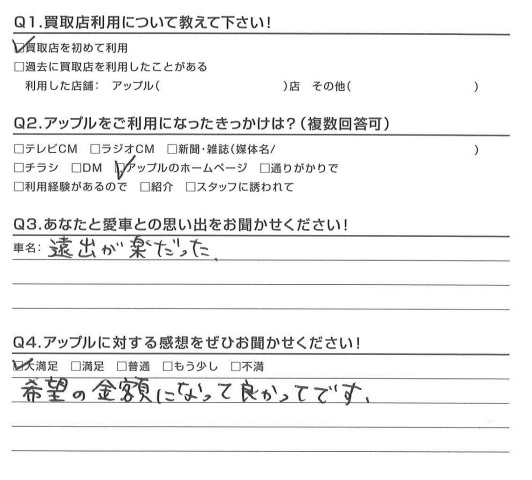 お車のご相談・ 査定だけでもOK! カンタン 入力 30秒 アップルがブランド買取始めました! お電話でも受付中! 受付時間10:00 ~ 18:30 0120-174-177 お車のご相談・ 査定だけでもOK! カンタン 入力 30秒 アップルがブランド買取始めました! お電話でも受付中! 受付時間10:00 ~ 18:30 0120-174-177 アップルがブランド買取始めました! お電話でも受付中! 受付時間10:00 ~ 18:30 0120-174-177 店舗情報 在庫車 スタッフ紹介 ブログ お客様の声 キャンペーン お得 無料査定 click お客様の声 ご記入日: 2016/06/30 H様 希望の金額になって良かってです。担当:松嶋 前へ 次へ お客様の声一覧を見る