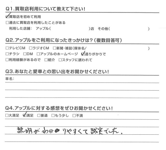 お車のご相談・ 査定だけでもOK! カンタン 入力 30秒 アップルがブランド買取始めました! お電話でも受付中! 受付時間10:00 ~ 18:30 0120-174-177 お車のご相談・ 査定だけでもOK! カンタン 入力 30秒 アップルがブランド買取始めました! お電話でも受付中! 受付時間10:00 ~ 18:30 0120-174-177 アップルがブランド買取始めました! お電話でも受付中! 受付時間10:00 ~ 18:30 0120-174-177 店舗情報 在庫車 スタッフ紹介 ブログ お客様の声 キャンペーン お得 無料査定 click お客様の声 ご記入日: 2016/08/20 匿名希望様 説明がわかりやすくて誠実でした。担当:松嶋 前へ 次へ お客様の声一覧を見る