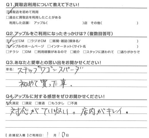 お車のご相談・ 査定だけでもOK! カンタン 入力 30秒 アップルがブランド買取始めました! お電話でも受付中! 受付時間10:00 ~ 18:30 0120-174-177 お車のご相談・ 査定だけでもOK! カンタン 入力 30秒 アップルがブランド買取始めました! お電話でも受付中! 受付時間10:00 ~ 18:30 0120-174-177 アップルがブランド買取始めました! お電話でも受付中! 受付時間10:00 ~ 18:30 0120-174-177 店舗情報 在庫車 スタッフ紹介 ブログ お客様の声 キャンペーン お得 無料査定 click お客様の声 ご記入日: 2017/01/10 K様 対応がていねい。店内がキレイ。担当:野口 前へ 次へ お客様の声一覧を見る