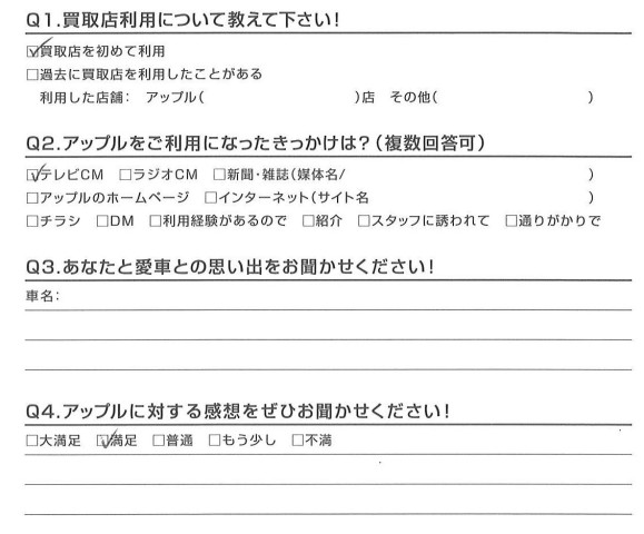 お車のご相談・ 査定だけでもOK! カンタン 入力 30秒 アップルがブランド買取始めました! お電話でも受付中! 受付時間10:00 ~ 18:30 0120-174-177 お車のご相談・ 査定だけでもOK! カンタン 入力 30秒 アップルがブランド買取始めました! お電話でも受付中! 受付時間10:00 ~ 18:30 0120-174-177 アップルがブランド買取始めました! お電話でも受付中! 受付時間10:00 ~ 18:30 0120-174-177 店舗情報 在庫車 スタッフ紹介 ブログ お客様の声 キャンペーン お得 無料査定 click お客様の声 ご記入日: 2017/01/11 H様 担当:中瀬 前へ 次へ お客様の声一覧を見る