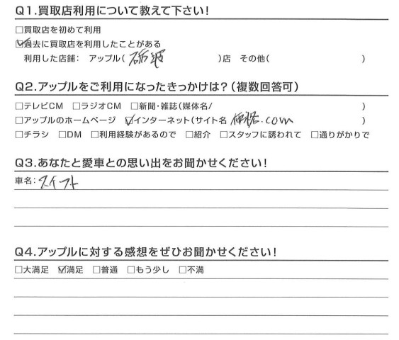 お車のご相談・ 査定だけでもOK! カンタン 入力 30秒 アップルがブランド買取始めました! お電話でも受付中! 受付時間10:00 ~ 18:30 0120-174-177 お車のご相談・ 査定だけでもOK! カンタン 入力 30秒 アップルがブランド買取始めました! お電話でも受付中! 受付時間10:00 ~ 18:30 0120-174-177 アップルがブランド買取始めました! お電話でも受付中! 受付時間10:00 ~ 18:30 0120-174-177 店舗情報 在庫車 スタッフ紹介 ブログ お客様の声 キャンペーン お得 無料査定 click お客様の声 ご記入日: 2017/01/12 N様 担当:中瀬 前へ 次へ お客様の声一覧を見る