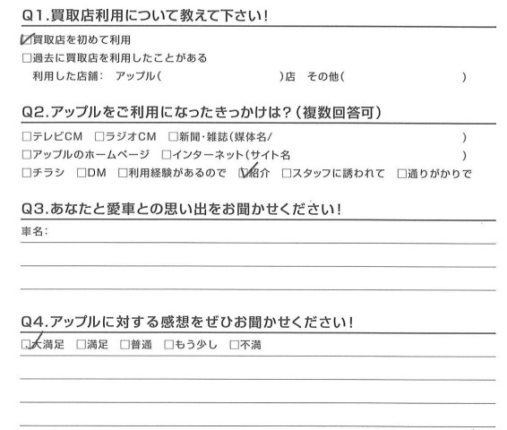お車のご相談・ 査定だけでもOK! カンタン 入力 30秒 アップルがブランド買取始めました! お電話でも受付中! 受付時間10:00 ~ 18:30 0120-174-177 お車のご相談・ 査定だけでもOK! カンタン 入力 30秒 アップルがブランド買取始めました! お電話でも受付中! 受付時間10:00 ~ 18:30 0120-174-177 アップルがブランド買取始めました! お電話でも受付中! 受付時間10:00 ~ 18:30 0120-174-177 店舗情報 在庫車 スタッフ紹介 ブログ お客様の声 キャンペーン お得 無料査定 click お客様の声 ご記入日: 2017/01/14 S様 担当:野口 前へ 次へ お客様の声一覧を見る