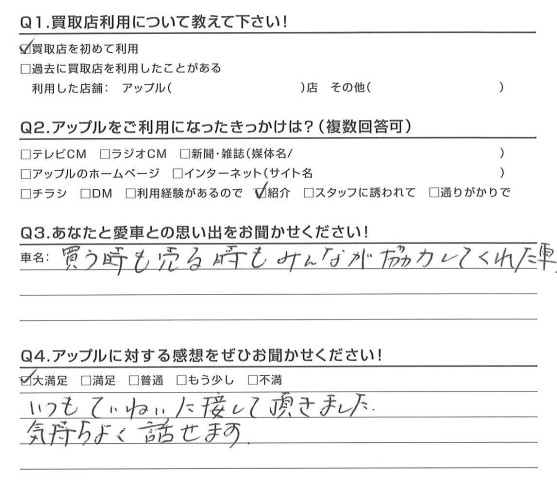お車のご相談・ 査定だけでもOK! カンタン 入力 30秒 アップルがブランド買取始めました! お電話でも受付中! 受付時間10:00 ~ 18:30 0120-174-177 お車のご相談・ 査定だけでもOK! カンタン 入力 30秒 アップルがブランド買取始めました! お電話でも受付中! 受付時間10:00 ~ 18:30 0120-174-177 アップルがブランド買取始めました! お電話でも受付中! 受付時間10:00 ~ 18:30 0120-174-177 店舗情報 在庫車 スタッフ紹介 ブログ お客様の声 キャンペーン お得 無料査定 click お客様の声 ご記入日: 2017/01/20 E様 いつも丁寧に接して頂きました。気持ちよく話せます。担当:武田 前へ 次へ お客様の声一覧を見る
