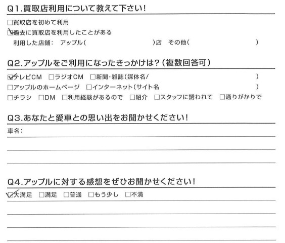 お車のご相談・ 査定だけでもOK! カンタン 入力 30秒 アップルがブランド買取始めました! お電話でも受付中! 受付時間10:00 ~ 18:30 0120-174-177 お車のご相談・ 査定だけでもOK! カンタン 入力 30秒 アップルがブランド買取始めました! お電話でも受付中! 受付時間10:00 ~ 18:30 0120-174-177 アップルがブランド買取始めました! お電話でも受付中! 受付時間10:00 ~ 18:30 0120-174-177 店舗情報 在庫車 スタッフ紹介 ブログ お客様の声 キャンペーン お得 無料査定 click お客様の声 ご記入日: 2017/01/17 T様 担当:松嶋 前へ 次へ お客様の声一覧を見る
