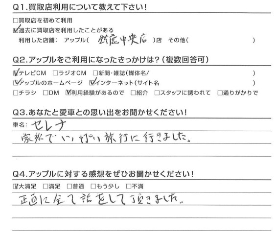 お車のご相談・ 査定だけでもOK! カンタン 入力 30秒 アップルがブランド買取始めました! お電話でも受付中! 受付時間10:00 ~ 18:30 0120-174-177 お車のご相談・ 査定だけでもOK! カンタン 入力 30秒 アップルがブランド買取始めました! お電話でも受付中! 受付時間10:00 ~ 18:30 0120-174-177 アップルがブランド買取始めました! お電話でも受付中! 受付時間10:00 ~ 18:30 0120-174-177 店舗情報 在庫車 スタッフ紹介 ブログ お客様の声 キャンペーン お得 無料査定 click お客様の声 ご記入日: 2017/03/03 T様 正直に全て話をして頂きました。担当:中瀬 前へ 次へ お客様の声一覧を見る