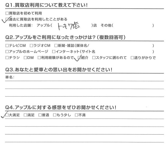 お車のご相談・ 査定だけでもOK! カンタン 入力 30秒 アップルがブランド買取始めました! お電話でも受付中! 受付時間10:00 ~ 18:30 0120-174-177 お車のご相談・ 査定だけでもOK! カンタン 入力 30秒 アップルがブランド買取始めました! お電話でも受付中! 受付時間10:00 ~ 18:30 0120-174-177 アップルがブランド買取始めました! お電話でも受付中! 受付時間10:00 ~ 18:30 0120-174-177 店舗情報 在庫車 スタッフ紹介 ブログ お客様の声 キャンペーン お得 無料査定 click お客様の声 ご記入日: 2017/03/21 M様 愛車:キャラバン担当:松嶋 前へ 次へ お客様の声一覧を見る