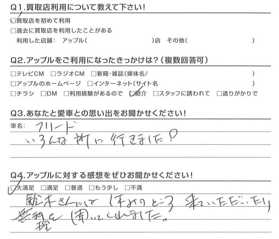 お車のご相談・ 査定だけでもOK! カンタン 入力 30秒 アップルがブランド買取始めました! お電話でも受付中! 受付時間10:00 ~ 18:30 0120-174-177 お車のご相談・ 査定だけでもOK! カンタン 入力 30秒 アップルがブランド買取始めました! お電話でも受付中! 受付時間10:00 ~ 18:30 0120-174-177 アップルがブランド買取始めました! お電話でも受付中! 受付時間10:00 ~ 18:30 0120-174-177 店舗情報 在庫車 スタッフ紹介 ブログ お客様の声 キャンペーン お得 無料査定 click お客様の声 ご記入日: 2017/06/22 K様 愛車:フリード鈴木さんにはお休みのところ来ていただいたり無理を聞いてくれました。担当:鈴木 前へ 次へ お客様の声一覧を見る