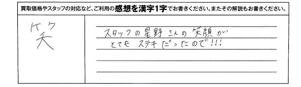 お車のご相談・ 査定だけでもOK! カンタン 入力 30秒 アップルがブランド買取始めました! お電話でも受付中! 受付時間10:00 ~ 18:30 0120-174-177 お車のご相談・ 査定だけでもOK! カンタン 入力 30秒 アップルがブランド買取始めました! お電話でも受付中! 受付時間10:00 ~ 18:30 0120-174-177 アップルがブランド買取始めました! お電話でも受付中! 受付時間10:00 ~ 18:30 0120-174-177 店舗情報 在庫車 スタッフ紹介 ブログ お客様の声 キャンペーン お得 無料査定 click お客様の声 ご記入日: 2011/03/21 伊賀市 U・S様 「笑」 スタッフの星野さんの笑顔がとてもステキだったので!!! 前へ 次へ お客様の声一覧を見る