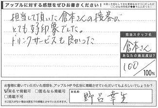 お車のご相談・ 査定だけでもOK! カンタン 入力 30秒 アップルがブランド買取始めました! お電話でも受付中! 受付時間10:00 ~ 18:30 0120-174-177 お車のご相談・ 査定だけでもOK! カンタン 入力 30秒 アップルがブランド買取始めました! お電話でも受付中! 受付時間10:00 ~ 18:30 0120-174-177 アップルがブランド買取始めました! お電話でも受付中! 受付時間10:00 ~ 18:30 0120-174-177 店舗情報 在庫車 スタッフ紹介 ブログ お客様の声 キャンペーン お得 無料査定 click お客様の声 ご記入日: 2012/01/23 四日市市 野呂様 担当していただいた倉本さんの接客がとても好印象でした。ドリンクサービスも良かった 前へ 次へ お客様の声一覧を見る