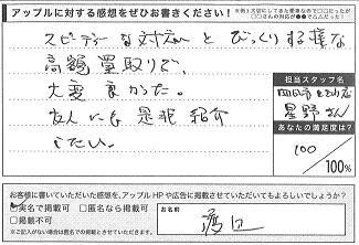 お車のご相談・ 査定だけでもOK! カンタン 入力 30秒 アップルがブランド買取始めました! お電話でも受付中! 受付時間10:00 ~ 18:30 0120-174-177 お車のご相談・ 査定だけでもOK! カンタン 入力 30秒 アップルがブランド買取始めました! お電話でも受付中! 受付時間10:00 ~ 18:30 0120-174-177 アップルがブランド買取始めました! お電話でも受付中! 受付時間10:00 ~ 18:30 0120-174-177 店舗情報 在庫車 スタッフ紹介 ブログ お客様の声 キャンペーン お得 無料査定 click お客様の声 ご記入日: 2012/02/29 四日市市 渡辺様 スピーディーな対応とびっくりするような高額買取で大変良かった。友人にも是非紹介したい。 前へ 次へ お客様の声一覧を見る
