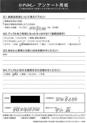 お車のご相談・ 査定だけでもOK! カンタン 入力 30秒 アップルがブランド買取始めました! お電話でも受付中! 受付時間10:00 ~ 18:30 0120-174-177 お車のご相談・ 査定だけでもOK! カンタン 入力 30秒 アップルがブランド買取始めました! お電話でも受付中! 受付時間10:00 ~ 18:30 0120-174-177 アップルがブランド買取始めました! お電話でも受付中! 受付時間10:00 ~ 18:30 0120-174-177 店舗情報 在庫車 スタッフ紹介 ブログ お客様の声 キャンペーン お得 無料査定 click お客様の声 ご記入日: 2018/02/18 K様 担当:中山 前へ 次へ お客様の声一覧を見る