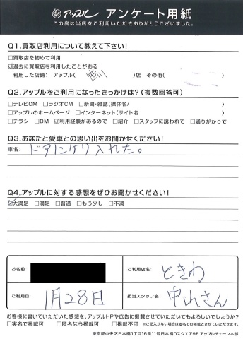 お車のご相談・ 査定だけでもOK! カンタン 入力 30秒 アップルがブランド買取始めました! お電話でも受付中! 受付時間10:00 ~ 18:30 0120-174-177 お車のご相談・ 査定だけでもOK! カンタン 入力 30秒 アップルがブランド買取始めました! お電話でも受付中! 受付時間10:00 ~ 18:30 0120-174-177 アップルがブランド買取始めました! お電話でも受付中! 受付時間10:00 ~ 18:30 0120-174-177 店舗情報 在庫車 スタッフ紹介 ブログ お客様の声 キャンペーン お得 無料査定 click お客様の声 ご記入日: 2018/01/28 O様 ドアにケリ入れた。 前へ 次へ お客様の声一覧を見る