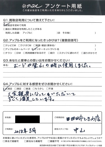 お車のご相談・ 査定だけでもOK! カンタン 入力 30秒 アップルがブランド買取始めました! お電話でも受付中! 受付時間10:00 ~ 18:30 0120-174-177 お車のご相談・ 査定だけでもOK! カンタン 入力 30秒 アップルがブランド買取始めました! お電話でも受付中! 受付時間10:00 ~ 18:30 0120-174-177 アップルがブランド買取始めました! お電話でも受付中! 受付時間10:00 ~ 18:30 0120-174-177 店舗情報 在庫車 スタッフ紹介 ブログ お客様の声 キャンペーン お得 無料査定 click お客様の声 ご記入日: 2018/03/03 M様 ボードや登山の時に使用しました。大変親身になっていただいてすごく満足しています。 前へ 次へ お客様の声一覧を見る