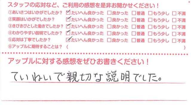 お車のご相談・ 査定だけでもOK! カンタン 入力 30秒 アップルがブランド買取始めました! お電話でも受付中! 受付時間10:00 ~ 18:30 0120-174-177 お車のご相談・ 査定だけでもOK! カンタン 入力 30秒 アップルがブランド買取始めました! お電話でも受付中! 受付時間10:00 ~ 18:30 0120-174-177 アップルがブランド買取始めました! お電話でも受付中! 受付時間10:00 ~ 18:30 0120-174-177 店舗情報 在庫車 スタッフ紹介 ブログ お客様の声 キャンペーン お得 無料査定 click お客様の声 ご記入日: 2012/09/01 K様 ていねいで親切な説明でした。*担当 星野 前へ 次へ お客様の声一覧を見る