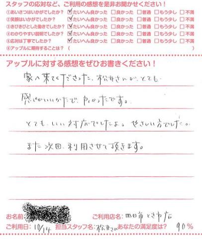 お車のご相談・ 査定だけでもOK! カンタン 入力 30秒 アップルがブランド買取始めました! お電話でも受付中! 受付時間10:00 ~ 18:30 0120-174-177 お車のご相談・ 査定だけでもOK! カンタン 入力 30秒 アップルがブランド買取始めました! お電話でも受付中! 受付時間10:00 ~ 18:30 0120-174-177 アップルがブランド買取始めました! お電話でも受付中! 受付時間10:00 ~ 18:30 0120-174-177 店舗情報 在庫車 スタッフ紹介 ブログ お客様の声 キャンペーン お得 無料査定 click お客様の声 ご記入日: 2012/10/19 K.N様 家へ来てくださった松井さんが、とても感じがいいかたで、良かったです。とてもいい対応でしたよ。やさしい方でした。また次回、利用させていただきます。*担当 松井 前へ 次へ お客様の声一覧を見る