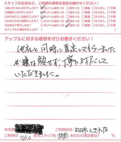 お車のご相談・ 査定だけでもOK! カンタン 入力 30秒 アップルがブランド買取始めました! お電話でも受付中! 受付時間10:00 ~ 18:30 0120-174-177 お車のご相談・ 査定だけでもOK! カンタン 入力 30秒 アップルがブランド買取始めました! お電話でも受付中! 受付時間10:00 ~ 18:30 0120-174-177 アップルがブランド買取始めました! お電話でも受付中! 受付時間10:00 ~ 18:30 0120-174-177 店舗情報 在庫車 スタッフ紹介 ブログ お客様の声 キャンペーン お得 無料査定 click お客様の声 ご記入日: 2012/10/12 I.Y様 他社と同時に査定してもらいましたが嫌な顔せず、丁寧に対応していただきました。*担当 武田 前へ 次へ お客様の声一覧を見る