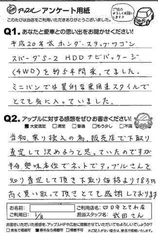 査定していただき、下取りより18万円高く買い取って頂きとても感謝しております。