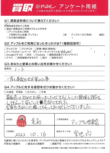 買取店は初めて利用しましたが、きちんとした説明と対応をしてもらって安心して売却できました。写真もきれいに撮ってもらってありがとうございました。