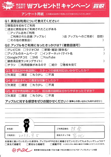 お車のご相談・ 査定だけでもOK! カンタン 入力 30秒 アップルがブランド買取始めました! お電話でも受付中! 受付時間10:00 ~ 19:00 0120-43-2228 お車のご相談・ 査定だけでもOK! カンタン 入力 30秒 アップルがブランド買取始めました! お電話でも受付中! 受付時間10:00 ~ 19:00 0120-43-2228 アップルがブランド買取始めました! お電話でも受付中! 受付時間10:00 ~ 19:00 0120-43-2228 店舗情報 在庫車 スタッフ紹介 ブログ お客様の声 キャンペーン 無料査定 click お客様の声 ご記入日: 2023/09/05 I様 車名:トヨタ ヴィッツ 大満足 前へ 次へ お客様の声一覧を見る