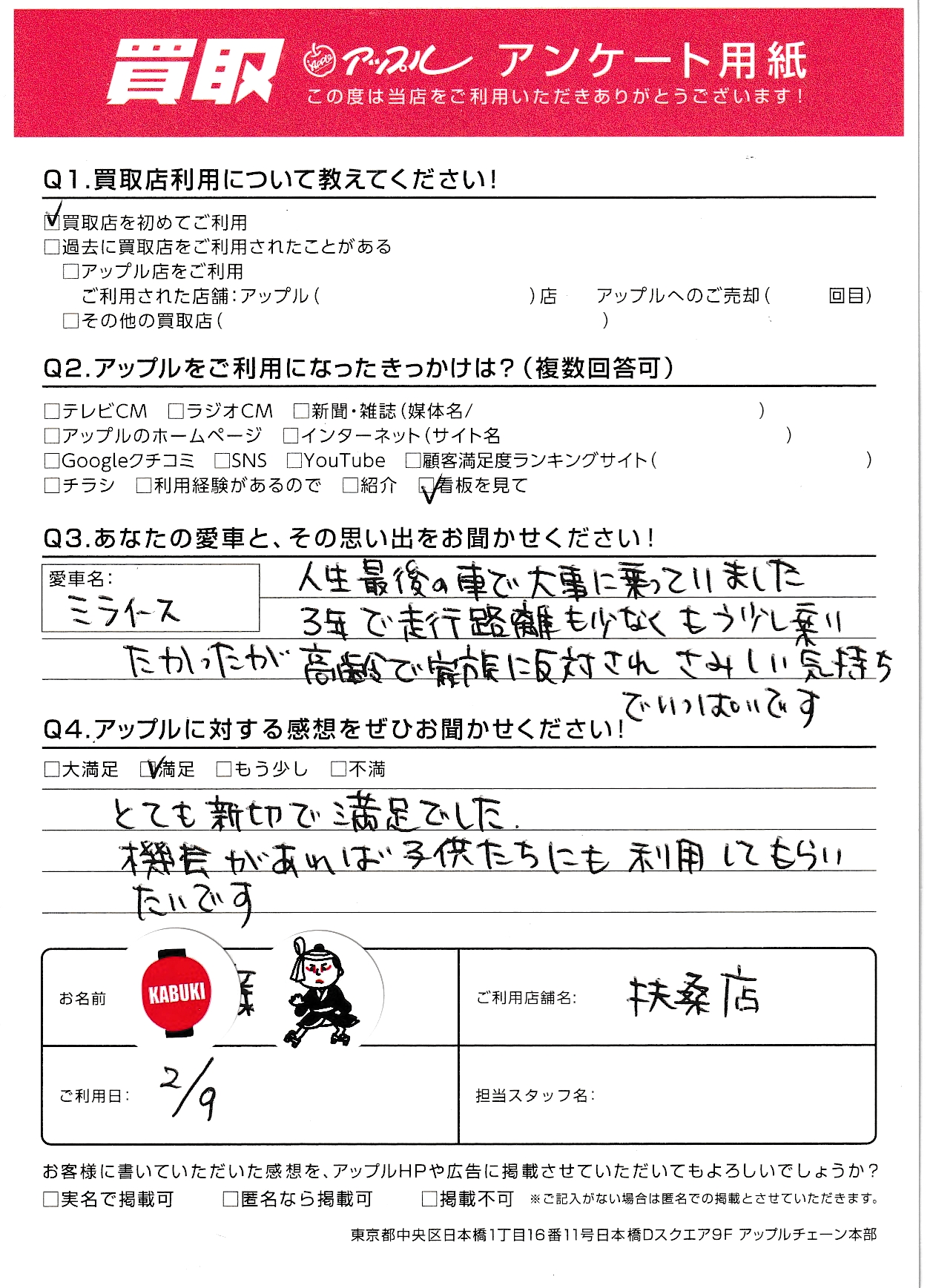 とても親切で満足でした。機会があれば子供たちにも利用してもらいたいです。