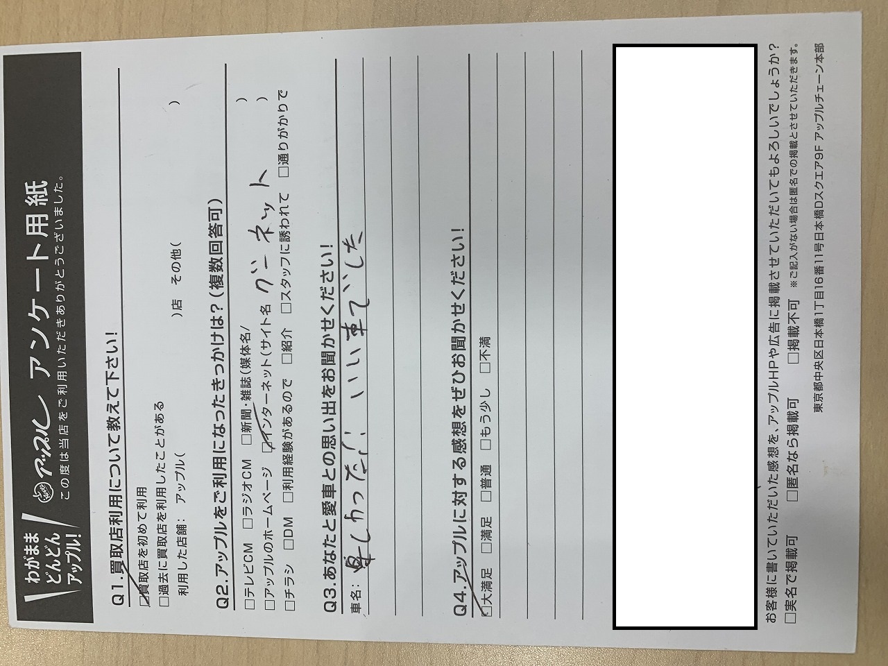 お車のご相談・ 査定だけでもOK! カンタン 入力 30秒 アップルがブランド買取始めました! お電話でも受付中! 受付時間09:30 ~ 18:00 0565-53-8800 お車のご相談・ 査定だけでもOK! カンタン 入力 30秒 アップルがブランド買取始めました! お電話でも受付中! 受付時間09:30 ~ 18:00 0565-53-8800 アップルがブランド買取始めました! お電話でも受付中! 受付時間09:30 ~ 18:00 0565-53-8800 店舗情報 在庫車 スタッフ紹介 ブログ お客様の声 キャンペーン お得 無料査定 click お客様の声 ご記入日: -/-/- 愛知県豊田市 KN様 楽しかった!! いい車でした 前へ 次へ お客様の声一覧を見る