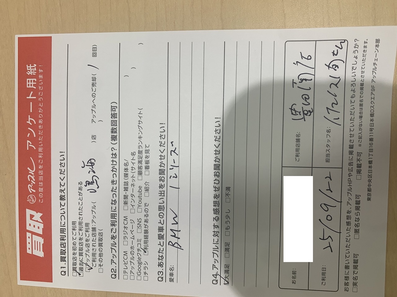 お車のご相談・ 査定だけでもOK! カンタン 入力 30秒 アップルがブランド買取始めました! お電話でも受付中! 受付時間09:30 ~ 18:00 0565-53-8800 お車のご相談・ 査定だけでもOK! カンタン 入力 30秒 アップルがブランド買取始めました! お電話でも受付中! 受付時間09:30 ~ 18:00 0565-53-8800 アップルがブランド買取始めました! お電話でも受付中! 受付時間09:30 ~ 18:00 0565-53-8800 店舗情報 在庫車 スタッフ紹介 ブログ お客様の声 キャンペーン お得 無料査定 click お客様の声 ご記入日: 2022/09/22 匿名様 車名:BMW 1シリーズ 前へ 次へ お客様の声一覧を見る