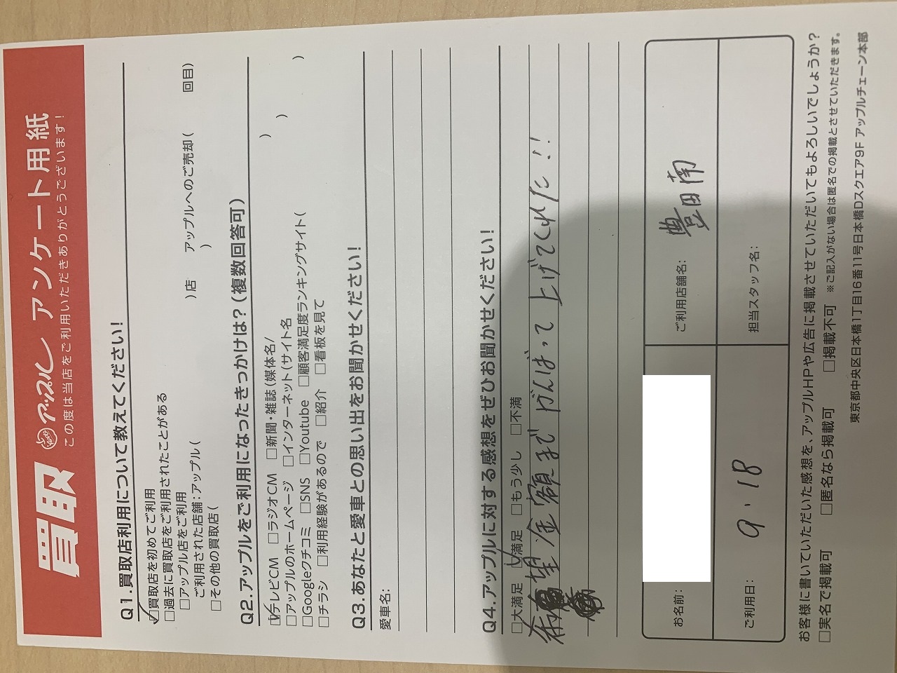 お車のご相談・ 査定だけでもOK! カンタン 入力 30秒 アップルがブランド買取始めました! お電話でも受付中! 受付時間09:30 ~ 18:00 0565-53-8800 お車のご相談・ 査定だけでもOK! カンタン 入力 30秒 アップルがブランド買取始めました! お電話でも受付中! 受付時間09:30 ~ 18:00 0565-53-8800 アップルがブランド買取始めました! お電話でも受付中! 受付時間09:30 ~ 18:00 0565-53-8800 店舗情報 在庫車 スタッフ紹介 ブログ お客様の声 キャンペーン お得 無料査定 click お客様の声 ご記入日: 2022/09/18 匿名様 車名:マツダ CX-5 希望金額までがんばってあげてくれた!! 前へ 次へ お客様の声一覧を見る