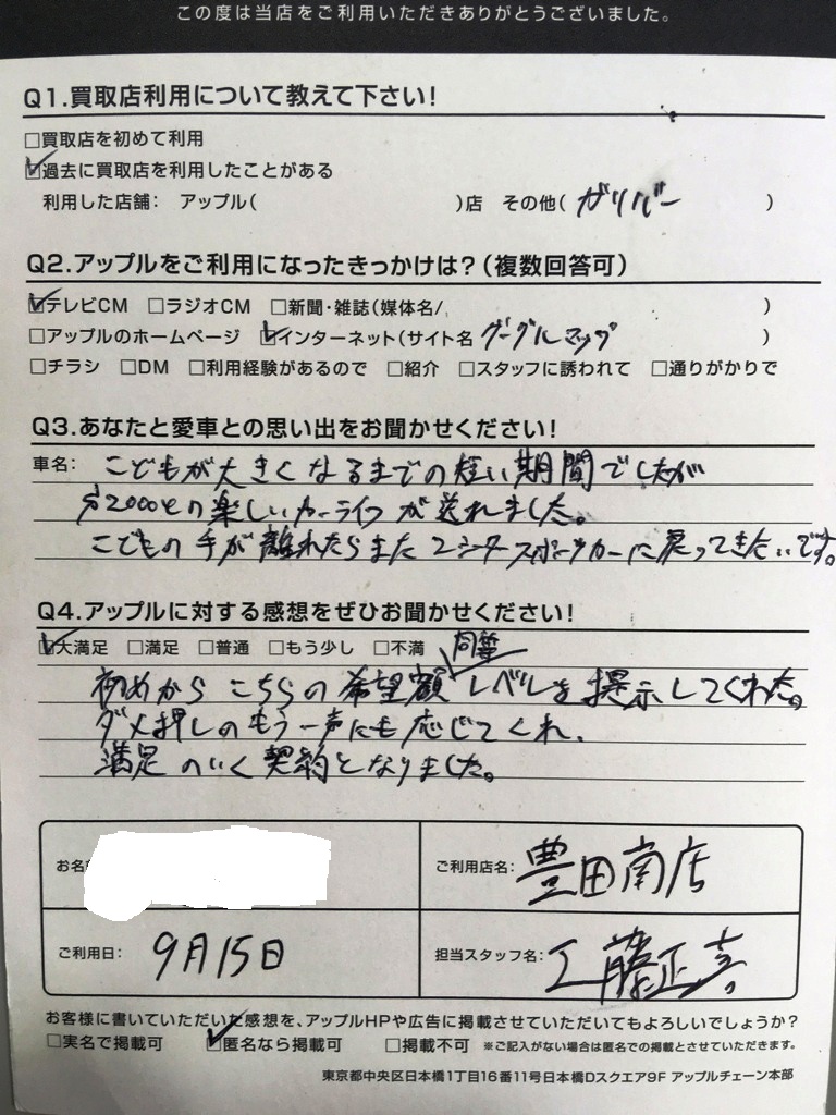 子供の手が離れたらまた2シータースポーツカーに戻ってきたいです。