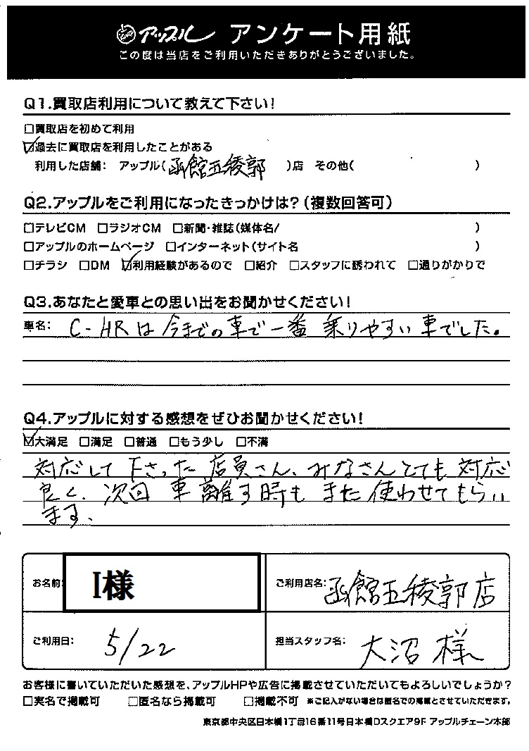 対応して下さった店員さん、みなさんとても対応良く、次回車離す時も また使わせてもらいます。