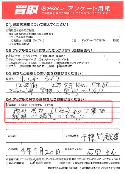 お車のご相談・ 査定だけでもOK! カンタン 入力 30秒 アップルがブランド買取始めました! お電話でも受付中! 受付時間9:30~18:30 052-711-8400 お車のご相談・ 査定だけでもOK! カンタン 入力 30秒 アップルがブランド買取始めました! お電話でも受付中! 受付時間9:30~18:30 052-711-8400 アップルがブランド買取始めました! お電話でも受付中! 受付時間9:30~18:30 052-711-8400 店舗情報 在庫車 スタッフ紹介 ブログ お客様の声 キャンペーン お得 無料査定 click お客様の声 ご記入日: 2022/07/20 N・S様 車名:ホンダ ライフ 満足度★★★★★他の会社(1社)より丁寧な説明で満足でした!! 前へ 次へ お客様の声一覧を見る