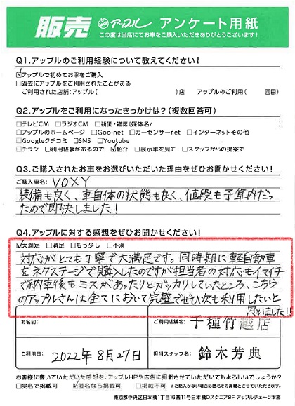 K様 車名:トヨタ ヴォクシー