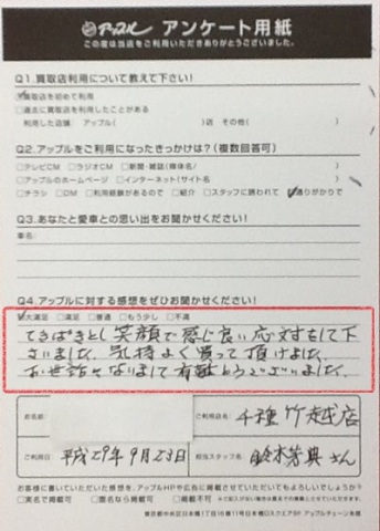 てきぱきとし笑顔で感じ良い応対をして下さいました。