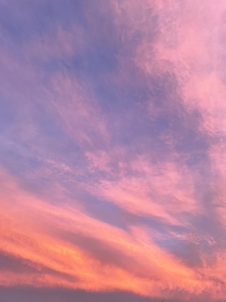 外に出てみると涼しく、雲がピンク色でとても綺麗で幻想的な空でした。