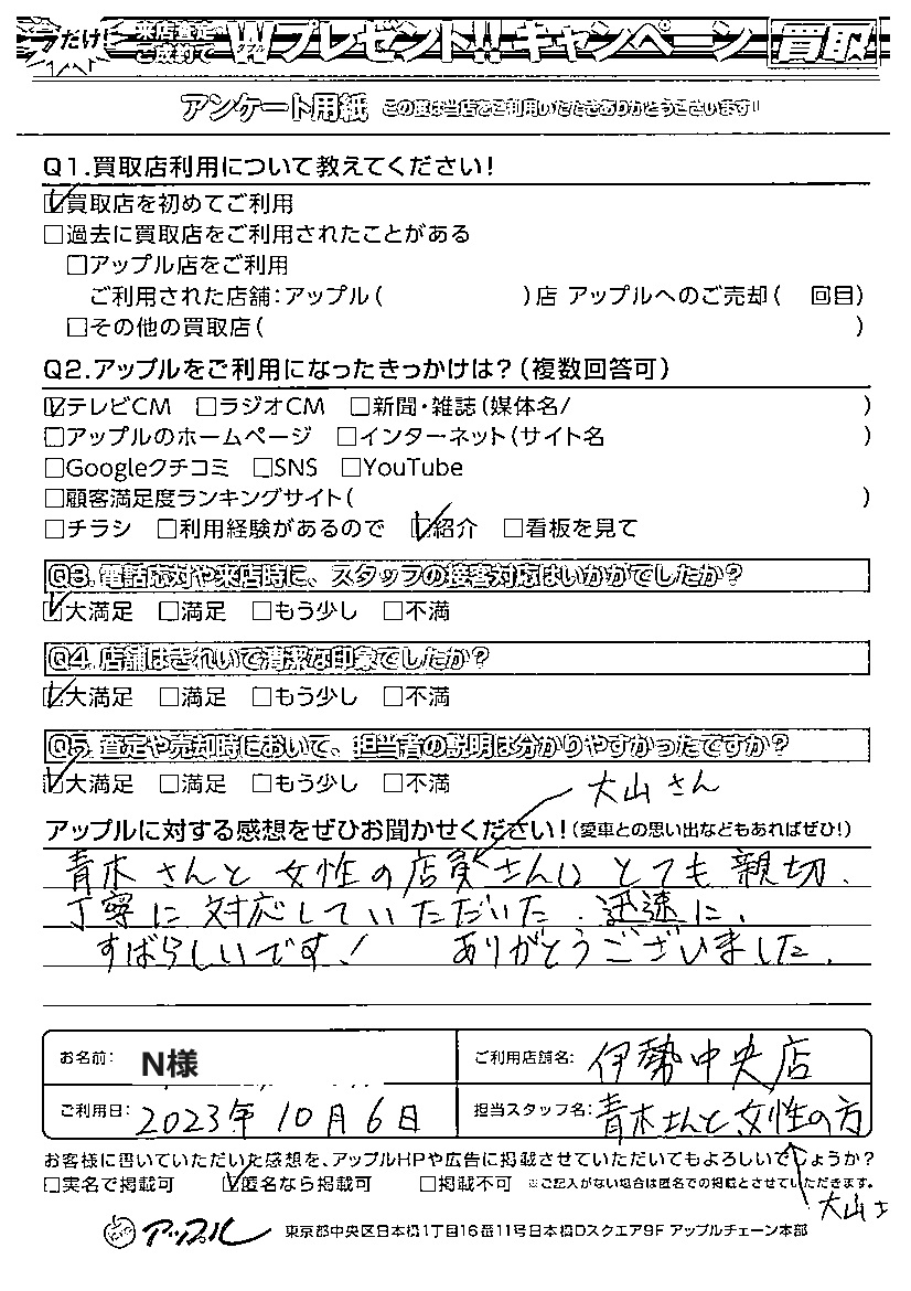 ご利用日:2023年10月6日 担当:青木・大山