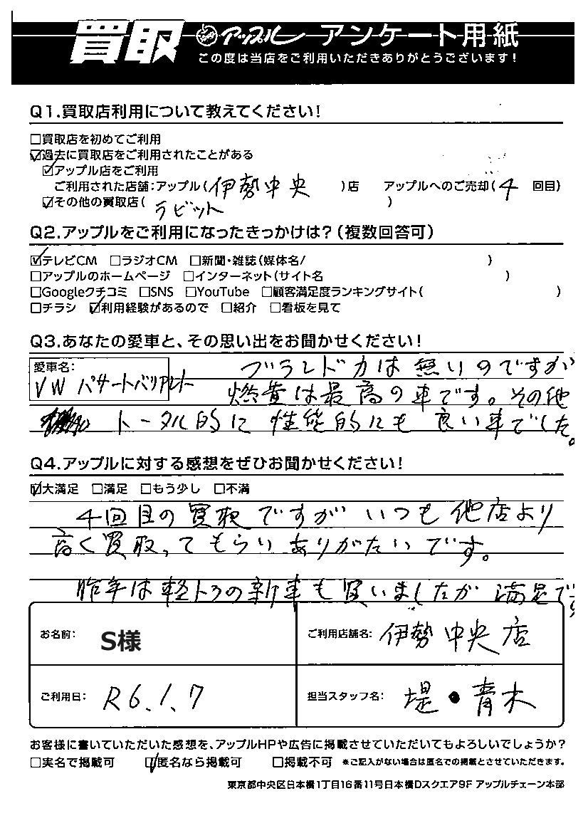 S様 車名:フォルクスワーゲン パサートヴァリアント