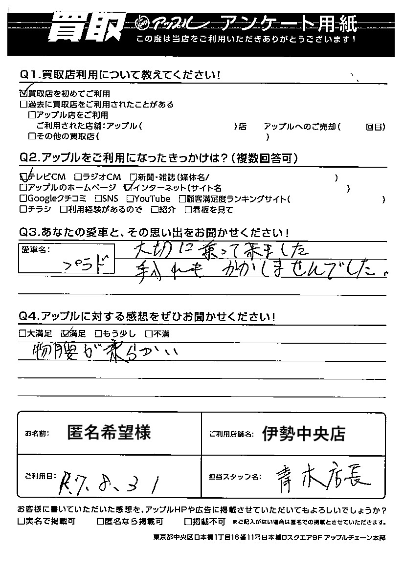 ご利用日:2025/08/31 匿名希望 様