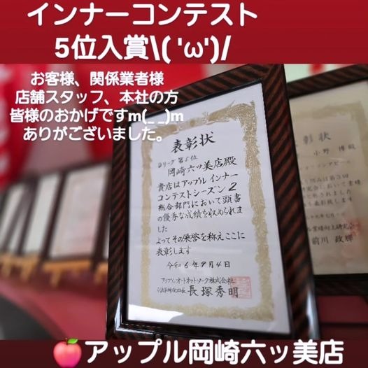 お車のご相談・ 査定だけでもOK! カンタン 入力 30秒 アップルがブランド買取始めました! お電話でも受付中! 受付時間10:00 ~ 19:00 (第4・第5月曜日は18:00閉店の場合あり) 0564-58-1700 お車のご相談・ 査定だけでもOK! カンタン 入力 30秒 アップルがブランド買取始めました! お電話でも受付中! 受付時間10:00 ~ 19:00 (第4・第5月曜日は18:00閉店の場合あり) 0564-58-1700 アップルがブランド買取始めました! お電話でも受付中! 受付時間10:00 ~ 19:00 (第4・第5月曜日は18:00閉店の場合あり) 0564-58-1700 店舗情報 在庫車 スタッフ紹介 ブログ お客様の声 キャンペーン 無料査定 click 最新記事一覧 月別アーカイブ 2026年04月(4)2026年03月(33)2026年02月(33)2026年01月(53)2025年12月(47)2025年11月(43)2025年10月(34)2025年09月(31)2025年08月(34)2025年07月(33)2025年06月(30)2025年05月(32)2025年04月(47)2025年03月(62)2025年02月(56)2025年01月(62)2024年12月(59)2024年11月(62)2024年10月(62)2024年09月(60)2024年08月(61)2024年07月(62)2024年06月(61)2024年05月(61)2024年04月(61)2024年03月(62)2024年02月(58)2024年01月(62)2023年12月(63)2023年11月(60)2023年10月(62)2023年09月(60)2023年08月(62)2023年07月(64)2023年06月(63)2023年05月(61)2023年04月(60)2023年03月(61)2023年02月(56)2023年01月(61)2022年12月(62)2022年11月(58)2022年10月(63)2022年09月(61)2022年08月(61)2022年07月(60)2022年06月(61)2022年05月(64)2022年04月(60)2022年03月(63)2022年02月(56)2022年01月(60)2021年12月(62)2021年11月(61)2021年10月(63)2021年09月(63)2021年08月(61)2021年07月(40)2021年06月(32)2021年05月(30)2021年04月(28)2021年03月(30)2021年02月(28)2021年01月(31)2020年12月(31)2020年11月(30)2020年10月(31)2020年09月(30)2020年08月(31)2020年07月(31)2020年06月(46)2020年05月(40)2020年04月(30)2020年03月(31)2020年02月(29)2020年01月(31)2019年12月(31)2019年11月(31)2019年10月(33)2019年09月(25)2019年08月(14)2019年07月(17)2019年06月(14)2019年05月(15)2019年04月(16)2019年03月(10)2019年02月(13)2019年01月(14)2018年12月(15)2018年11月(14)2018年10月(15)2018年09月(14)2018年08月(11)2018年07月(4)2018年06月(8)2018年05月(12)2018年04月(14)2018年03月(13)2018年02月(11)2018年01月(20)2017年12月(18)2017年11月(7)2017年10月(5)2017年09月(8)2017年08月(12)2017年07月(7)2017年06月(10)2017年05月(12)2017年04月(14)2017年03月(9)2017年02月(15)2017年01月(23)2016年12月(23)2016年11月(25)2016年10月(27)2016年09月(23)2016年08月(23)2016年07月(26)2016年06月(22)2016年05月(13)2016年04月(24)2016年03月(27)2016年02月(27)2016年01月(25)2015年12月(10)2015年11月(6)2015年10月(7)2015年09月(15)2015年08月(9)2015年07月(6)2015年06月(7)2015年05月(7)2015年04月(10)2015年03月(7)2015年02月(12)2015年01月(14)2014年12月(16)2014年11月(9)2014年10月(4)2014年09月(1)2014年08月(6)2014年07月(3)2014年06月(1)2014年05月(1)2014年02月(2)2013年11月(1)2013年10月(1)2013年09月(1)2013年08月(1)2013年07月(3)2012年11月(1)2012年04月(1)2012年02月(1)2011年11月(1)2011年10月(1)2011年09月(1)2011年08月(1)2011年07月(1)2011年05月(1)2011年02月(1)2011年01月(4)2010年12月(11)2010年11月(20)2010年10月(23)2010年09月(7)2010年08月(16)2010年07月(16)2010年06月(5) 811-820/4828件中 [ つぶやき ] 2024/10/04(金) 09:29 ʕ·ᴥ·ʔアルファード買取ご成約ありがとうございます。 #アルファード買取ご成約ありがとうございますm(__)m#アップル#中古車#トラクター#福祉車両#買取#販売#岡崎市買取#岡崎市#西尾市#安城市#アップル岡崎六ッ美店 [ つぶやき ] 2024/10/03(木) 14:33 ʕ·ᴥ·ʔ栗きんとんだよ。 #栗きんとん頂きました(^^)良い季節になりました(*´艸`)#アップル#中古車#トラクター#福祉車両#買取#販売#岡崎市買取#岡崎市#西尾市#安城市#アップル岡崎六ッ美店 [ つぶやき ] 2024/10/03(木) 09:27 ʕ·ᴥ·ʔ皆様に感謝です。 皆様には感謝しか御座いませんm(__)m本当にありがとうございました\('ω')/#アップル#中古車#トラクター#福祉車両#買取#販売#岡崎市買取#岡崎市#西尾市#安城市#アップル岡崎六ッ美店 [ つぶやき ] 2024/10/02(水) 15:24 ʕ·ᴥ·ʔ今日から乗れるよ。 16年落ちの車から乗り換え(´ω`)ONO初の安全運転支援とスマートキー付きに戸惑うONO(o^^o)#WRV#アップル#中古車#トラクター#福祉車両#買取#販売#岡崎市買取#岡崎市#西尾市#安城市#アップル岡崎六ッ美店 [ つぶやき ] 2024/10/02(水) 09:48 ʕ·ᴥ·ʔ水曜日は定休日だよ。 [ つぶやき ] 2024/10/01(火) 14:26 ʕ·ᴥ·ʔタント買取ご成約ありがとうございます。 #タント買取りご成約ありがとう御座います。#アップル#中古車#トラクター#福祉車両#買取#販売#岡崎市買取#岡崎市#西尾市#安城市#アップル岡崎六ッ美店 [ つぶやき ] 2024/10/01(火) 10:32 ʕ·ᴥ·ʔあしほっそ。 #ガンプラくん作ってみた(*´艸`)…足ほっそ(o^^o)#アップル#中古車#トラクター#福祉車両#買取#販売#岡崎市買取#岡崎市#西尾市#安城市#アップル岡崎六ッ美店 [ つぶやき ] 2024/09/30(月) 15:30 ʕ·ᴥ·ʔディッパーダンだよ。 9が付く日じゃないけど#ディッパーダン(^o^)ONOは甘いのよりおかず系が好き(o^^o)#アップル#中古車#トラクター#福祉車両#買取#販売#岡崎市買取#アップル岡崎六ツ美#クレープ [ つぶやき ] 2024/09/30(月) 09:22 ʕ·ᴥ·ʔN-VAN買取ご成約ありがとうございます。 #nvan買取りご成約有難うございますm(__)m#アップル#中古車#トラクター#福祉車両#買取#販売#岡崎市買取#岡崎市#西尾市#安城市#アップ