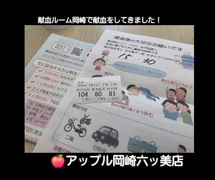 本日は少し時間をいただきまして、「献血ルーム岡崎」へ献血に行ってきました!
