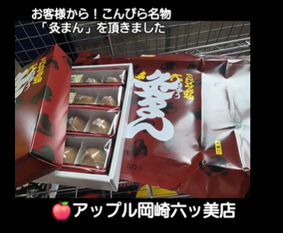 お車のご相談・ 査定だけでもOK! カンタン 入力 30秒 アップルがブランド買取始めました! お電話でも受付中! 受付時間10:00 ~ 19:00 (第4・第5月曜日は18:00閉店の場合あり) 0564-58-1700 お車のご相談・ 査定だけでもOK! カンタン 入力 30秒 アップルがブランド買取始めました! お電話でも受付中! 受付時間10:00 ~ 19:00 (第4・第5月曜日は18:00閉店の場合あり) 0564-58-1700 アップルがブランド買取始めました! お電話でも受付中! 受付時間10:00 ~ 19:00 (第4・第5月曜日は18:00閉店の場合あり) 0564-58-1700 店舗情報 在庫車 スタッフ紹介 ブログ お客様の声 キャンペーン 無料査定 click [ つぶやき ] 2026/04/17 (金) 10:07 ʕ·ᴥ·ʔお土産もらったよ。 本日、ご来店いただいたお客様からとっても嬉しいお土産を頂きました。香川県、こんぴら名物の「灸まん」です! 心ホッと癒やされる和の甘さパッケージの力強い筆文字が目を引きますね。箱を開けると、綺麗に並んだお饅頭がお目見えします。お灸の形をモチーフにした可愛らしい形に、見ているだけでほっこりします。お茶と一緒にいただくと、査定でフル回転させた頭と体に優しい甘さが染み渡ります。休憩時間にスタッフみんなで美味しくいただきます!大切なお車をお任せいただいた上、このような温かいお心遣いまでいただき、本当にありがとうございました。美味しいお饅頭でパワーチャージして、今日も元気に頑張ります!#アップル岡崎六ッ美店 #お土産 #灸まん #こんぴら名物 #感謝 車買取 2026-04-17 10:07:45 新しい記事へ 古い記事へ 最新記事 ʕ·ᴥ·ʔN-BOXあるあるだよ。ʕ·ᴥ·ʔハリアー買取ご成約ありがとうございます。【お車売却100の疑問】アップル岡崎六ッ美店が解説!【65.売却後に税金がかかる?】ʕ·ᴥ·ʔお土産もらったよ。ʕ·ᴥ·ʔプロボックス買取ご成約ありがとうございます。 店舗情報に戻る 月別アーカイブ 2026年04月(20)2026年03月(33)2026年02月(33)2026年01月(53)2025年12月(47)2025年11月(43)2025年10月(34)2025年09月(31)2025年08月(34)2025年07月(33)2025年06月(30)2025年05月(32)2025年04月(47)2025年03月(62)2025年02月(56)2025年01月(62)2024年12月(59)2024年11月(62)2024年10月(62)2024年09月(60)2024年08月(61)2024年07月(62)2024年06月(61)2024年05月(61)2024年04月(61)2024年03月(62)2024年02月(58)2024年01月(62)2023年12月(63)2023年11月(60)2023年10月(62)2023年09月(60)2023年08月(62)2023年07月(64)2023年06月(63)2023年05月(61)2023年04月(60)2023年03月(61)2023年02月(56)2023年01月(61)2022年12月(62)2022年11月(58)2022年10月(63)2022年09月(61)2022年08月(61)2022年07月(60)2022年06月(61)2022年05月(64)2022年04月(60)2022年03月(63)2022年02月(56)2022年01月(60)2021年12月(62)2021年11月(61)2021年10月(63)2021年09月(63)2021年08月(61)2021年07月(40)2021年06月(32)2021年05月(30)2021年04月(28)2021年03月(30)2021年02月(28)2021年01月(31)2020年12月(31)2020年11月(30)2020年10月(31)2020年09月(30)2020年08月(31)2020年07月(31)2020年06月(46)2020年05月(40)2020年04月(30)2020年03月(31)2020年02月(29)2020年01月(31)2019年12月(31)2019年11月(31)2019年10月(33)2019年09月(25)2019年08月(14)2019年07月(17)2019年06月(14)2019年05月(15)2019年04月(16)2019年03月(10)2019年02月(13)2019年01月(14)2018年12月(15)2018年11月(14)2018年10月(15)2018年09月(14)2018年08月(11)2018年07月(4)2018年06月(8)2018年05月(12)2018年04月(14)2018年03月(13)2018年02月(11)2018年01月(20)2017年12月(18)2017年11月(7)2017年10月(5)2017年09月(8)2017年08月(12)2017年07月(7)2017年06月(10)2017年05月(12)2017年04月(14)2017年03月(9)2017年02月(15)2017年01月(23)2016年12月(23)2016年11月(25)2016年10月(27)2016年09月(23)2016年08月(23)2016年07月(26)2016年06月(22)2016年05月(13)2016年04月(24)2016年03月(27)2016年02月(27)2016年01月(25)2015年12月(10)2015年11月(6)2015年10月(7)2015年09月(15)2015年08月(9)2015年07月(6)2015年06月(7)2015年05月(7)2015年04月(10)2015年03月(7)2015年02月(12)2015年01月(14)2014年12月(16)2014年11月(9)2014年10月(4)2014年09月(1)2014年08月(6)2014年07月(3)2014年06月(1)2014年05月(1)2014年02月(2)2013年11月(1)2013年10月(1)2013年09月(1)2013年08月(1)2013年07月(3)2012年11月(1)2012年04月(1)2012年02月(1)2011年11月(1)2011年10月(1)2011年09月(1)2011年08月(1)2011年07月(1)2011年05月(1)2011年02月(1)2011年01月(4)2010年12月(11)2010年11月(20)2010年10月(23)2010年09月(7)2010年08月(16)2010年07月(16)2010年06月(5)