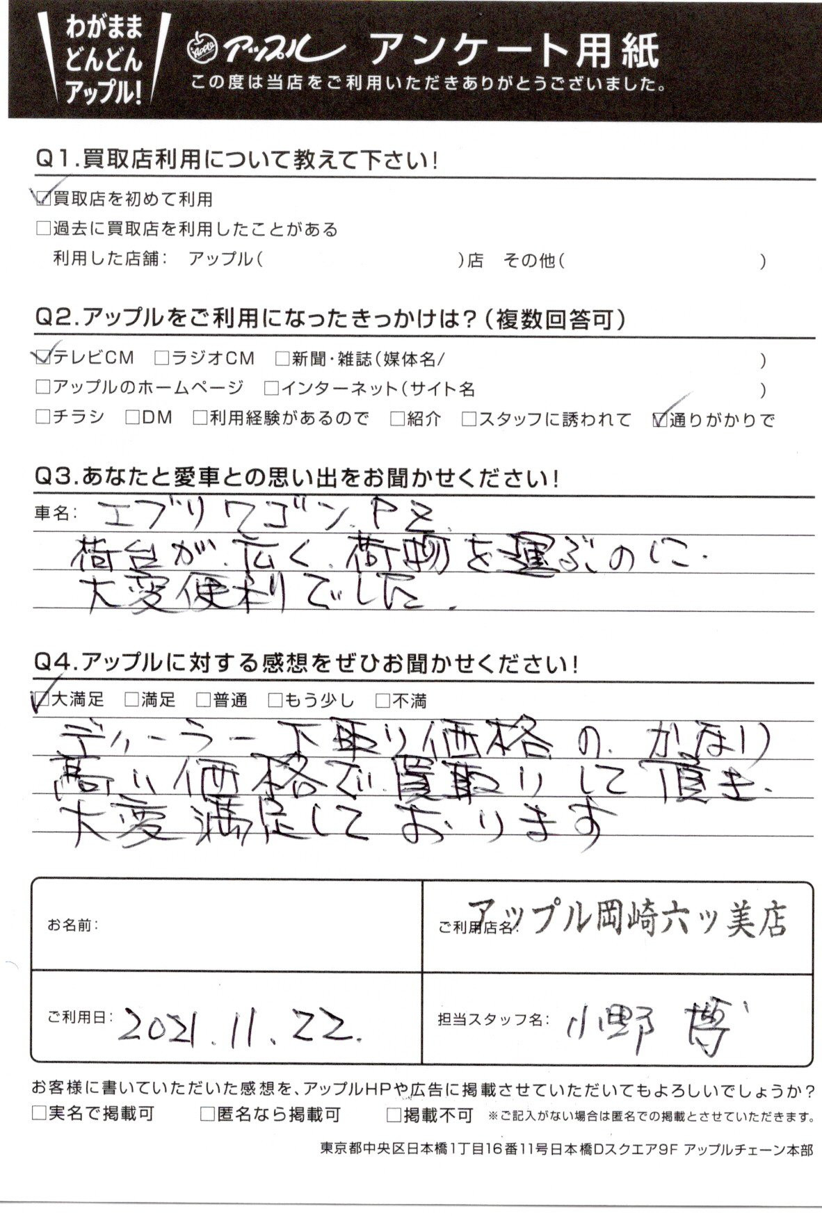 愛知県 匿名希望様  車名:スズキ エブリイワゴン