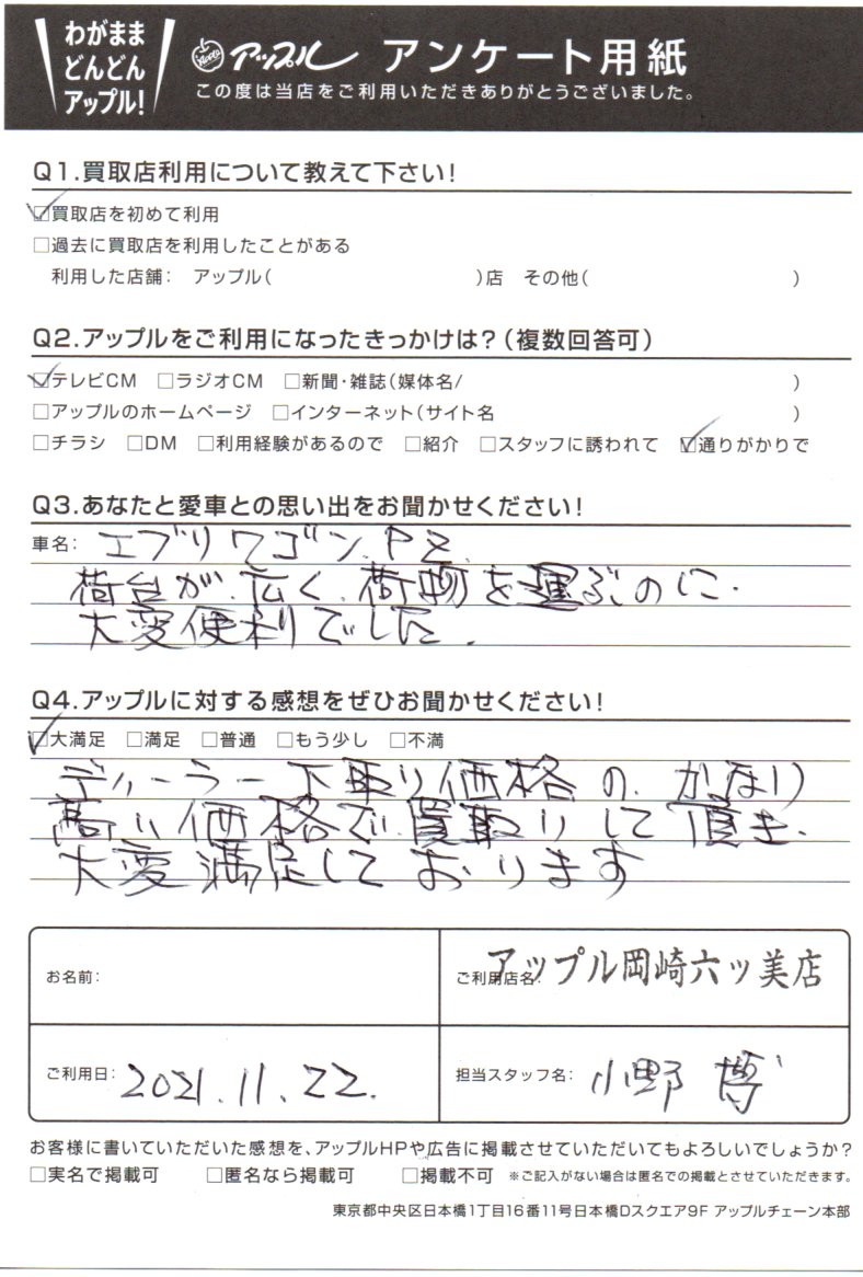 お車のご相談・ 査定だけでもOK! カンタン 入力 30秒 アップルがブランド買取始めました! お電話でも受付中! 受付時間10:00 ~ 19:00 (第4・第5月曜日は18:00閉店の場合あり) 0564-58-1700 お車のご相談・ 査定だけでもOK! カンタン 入力 30秒 アップルがブランド買取始めました! お電話でも受付中! 受付時間10:00 ~ 19:00 (第4・第5月曜日は18:00閉店の場合あり) 0564-58-1700 アップルがブランド買取始めました! お電話でも受付中! 受付時間10:00 ~ 19:00 (第4・第5月曜日は18:00閉店の場合あり) 0564-58-1700 店舗情報 在庫車 スタッフ紹介 ブログ お客様の声 キャンペーン 無料査定 click お客様の声 ご記入日: 2021/11/22 愛知県 匿名希望様 車名:スズキ エブリイワゴン ディーラー下取り価格のかなり高い価格で買取して頂き大変満足しております。 前へ 次へ お客様の声一覧を見る
