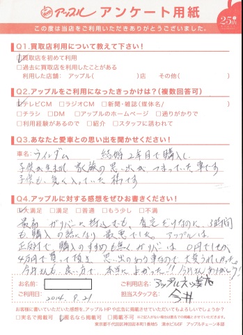 お車のご相談・ 査定だけでもOK! カンタン 入力 30秒 アップルがブランド買取始めました! お電話でも受付中! 受付時間10:00 ~ 19:00 (第4・第5月曜日は18:00閉店の場合あり) 0564-58-1700 お車のご相談・ 査定だけでもOK! カンタン 入力 30秒 アップルがブランド買取始めました! お電話でも受付中! 受付時間10:00 ~ 19:00 (第4・第5月曜日は18:00閉店の場合あり) 0564-58-1700 アップルがブランド買取始めました! お電話でも受付中! 受付時間10:00 ~ 19:00 (第4・第5月曜日は18:00閉店の場合あり) 0564-58-1700 店舗情報 在庫車 スタッフ紹介 ブログ お客様の声 キャンペーン 無料査定 click お客様の声 ご記入日: 2014/09/21 A様 結婚2年目で購入し子供が生まれて家族の思い出が詰まった車です。 前へ 次へ お客様の声一覧を見る