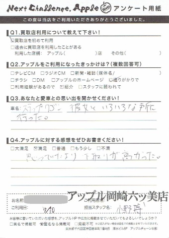 お車のご相談・ 査定だけでもOK! カンタン 入力 30秒 アップルがブランド買取始めました! お電話でも受付中! 受付時間10:00 ~ 19:00 (第4・第5月曜日は18:00閉店の場合あり) 0564-58-1700 お車のご相談・ 査定だけでもOK! カンタン 入力 30秒 アップルがブランド買取始めました! お電話でも受付中! 受付時間10:00 ~ 19:00 (第4・第5月曜日は18:00閉店の場合あり) 0564-58-1700 アップルがブランド買取始めました! お電話でも受付中! 受付時間10:00 ~ 19:00 (第4・第5月曜日は18:00閉店の場合あり) 0564-58-1700 店舗情報 在庫車 スタッフ紹介 ブログ お客様の声 キャンペーン 無料査定 click お客様の声 ご記入日: 2015/07/10 i様 思っていたより下取りが高かった。 前へ 次へ お客様の声一覧を見る