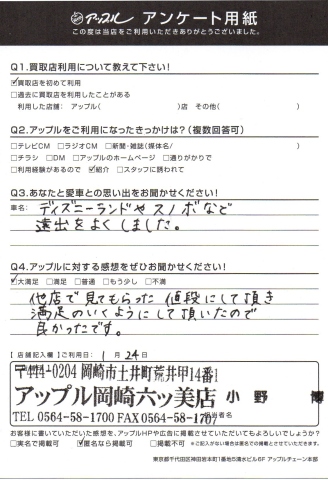 お車のご相談・ 査定だけでもOK! カンタン 入力 30秒 アップルがブランド買取始めました! お電話でも受付中! 受付時間10:00 ~ 19:00 (第4・第5月曜日は18:00閉店の場合あり) 0564-58-1700 お車のご相談・ 査定だけでもOK! カンタン 入力 30秒 アップルがブランド買取始めました! お電話でも受付中! 受付時間10:00 ~ 19:00 (第4・第5月曜日は18:00閉店の場合あり) 0564-58-1700 アップルがブランド買取始めました! お電話でも受付中! 受付時間10:00 ~ 19:00 (第4・第5月曜日は18:00閉店の場合あり) 0564-58-1700 店舗情報 在庫車 スタッフ紹介 ブログ お客様の声 キャンペーン 無料査定 click お客様の声 ご記入日: 2016/01/24 K.S様 他店で見てもらった値段にして頂き満足のいくようにして頂き良かったです。 前へ 次へ お客様の声一覧を見る