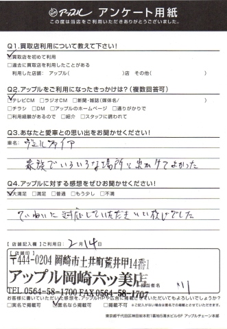 お車のご相談・ 査定だけでもOK! カンタン 入力 30秒 アップルがブランド買取始めました! お電話でも受付中! 受付時間10:00 ~ 19:00 (第4・第5月曜日は18:00閉店の場合あり) 0564-58-1700 お車のご相談・ 査定だけでもOK! カンタン 入力 30秒 アップルがブランド買取始めました! お電話でも受付中! 受付時間10:00 ~ 19:00 (第4・第5月曜日は18:00閉店の場合あり) 0564-58-1700 アップルがブランド買取始めました! お電話でも受付中! 受付時間10:00 ~ 19:00 (第4・第5月曜日は18:00閉店の場合あり) 0564-58-1700 店舗情報 在庫車 スタッフ紹介 ブログ お客様の声 キャンペーン 無料査定 click お客様の声 ご記入日: 2016/02/14 S.N様 ていねいに対応していただきいい感じでした。 前へ 次へ お客様の声一覧を見る