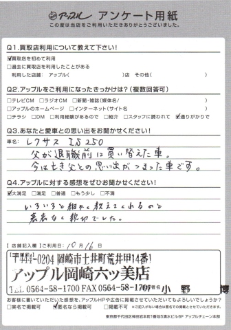 お車のご相談・ 査定だけでもOK! カンタン 入力 30秒 アップルがブランド買取始めました! お電話でも受付中! 受付時間10:00 ~ 19:00 (第4・第5月曜日は18:00閉店の場合あり) 0564-58-1700 お車のご相談・ 査定だけでもOK! カンタン 入力 30秒 アップルがブランド買取始めました! お電話でも受付中! 受付時間10:00 ~ 19:00 (第4・第5月曜日は18:00閉店の場合あり) 0564-58-1700 アップルがブランド買取始めました! お電話でも受付中! 受付時間10:00 ~ 19:00 (第4・第5月曜日は18:00閉店の場合あり) 0564-58-1700 店舗情報 在庫車 スタッフ紹介 ブログ お客様の声 キャンペーン 無料査定 click お客様の声 ご記入日: 2016/10/16 F.Y様 いろいろと細かく教えてくれるのと裏表なく親切でした。 前へ 次へ お客様の声一覧を見る